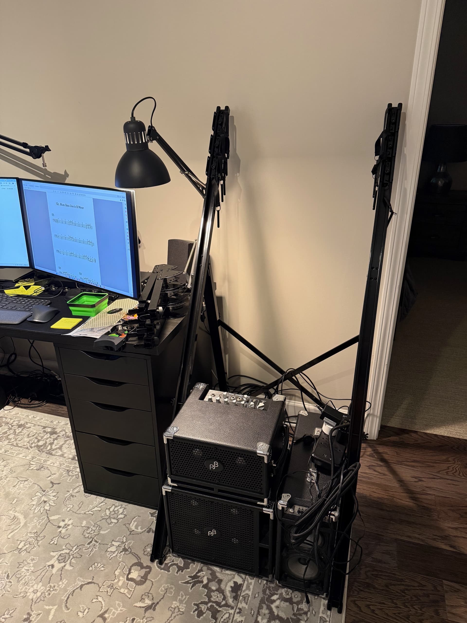 In my work apartment, I have my PJB rig, and a PJB briefcase amp which I have not spent a lot of time playing with. Going to try the upright through the briefcase and leave the bigger rig for electric bass, guitar and sax (ya, that’s a fun thing too).